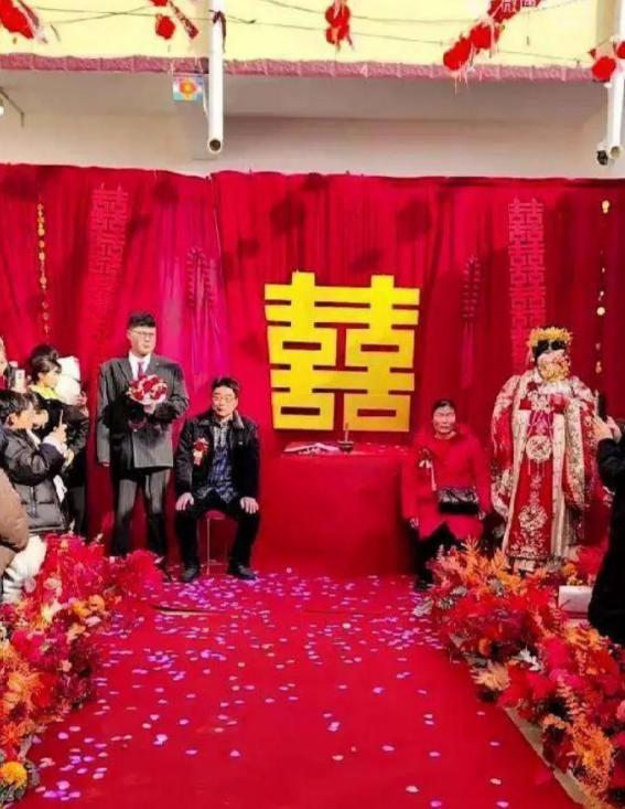 婚典就是自家院子的农家活水席,来的全是乡里乡亲。