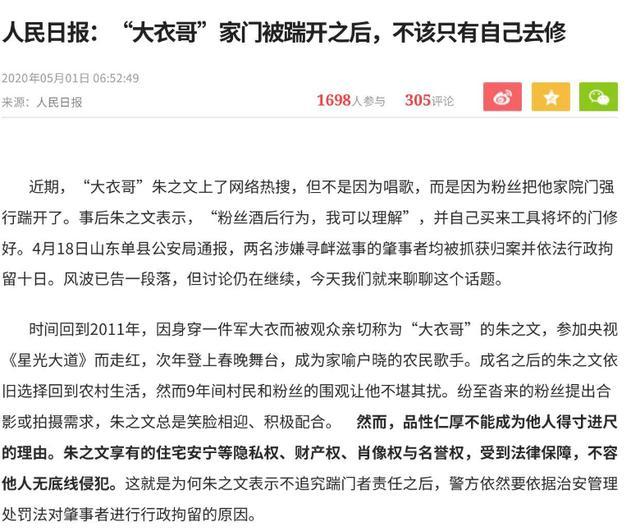 朱之文却笑着说意会粉丝酒后作为,我方买用具修好了门。