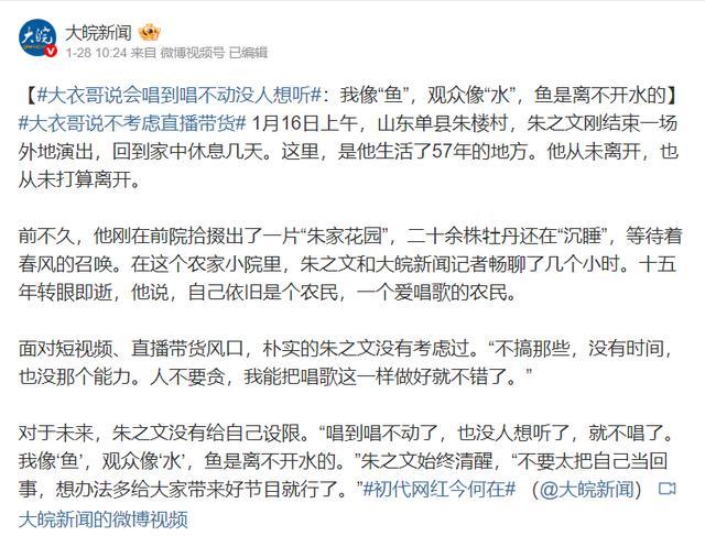 让千里寂许久的“大衣哥”朱之文从新走进行家的视线。