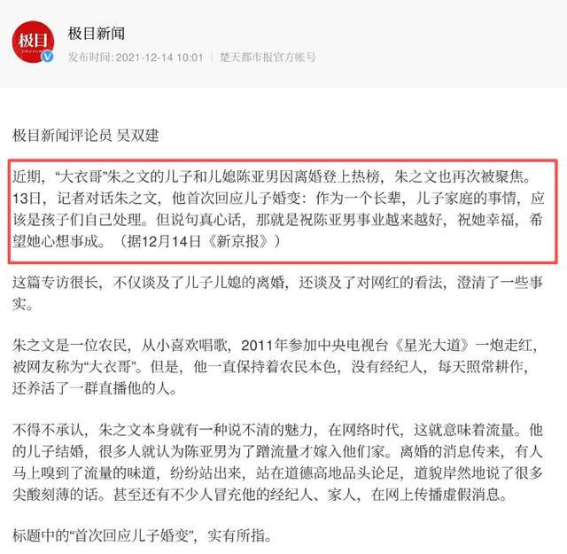 可朱之文从新至尾没说过陈亚男一句谰言。