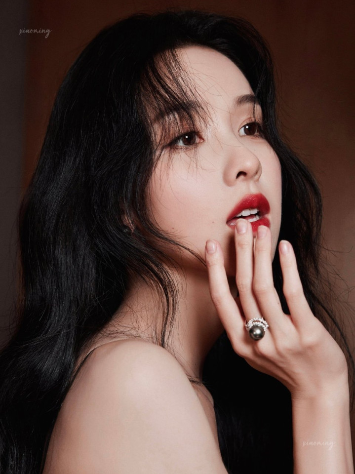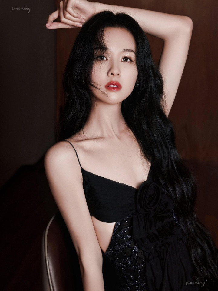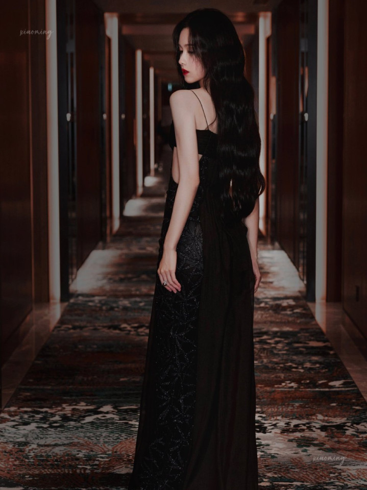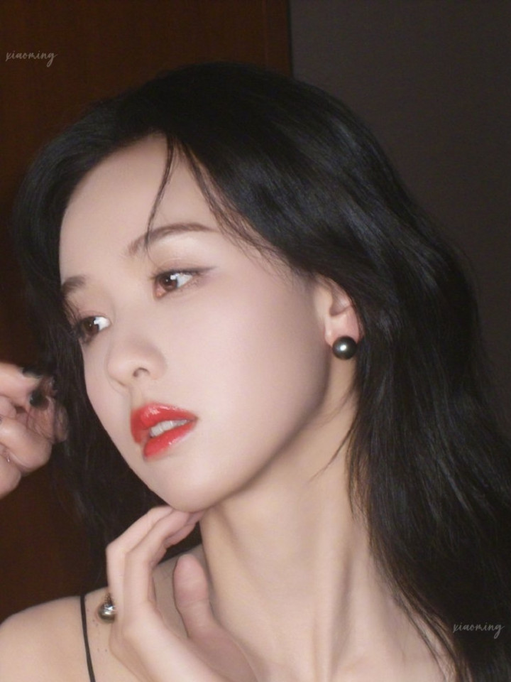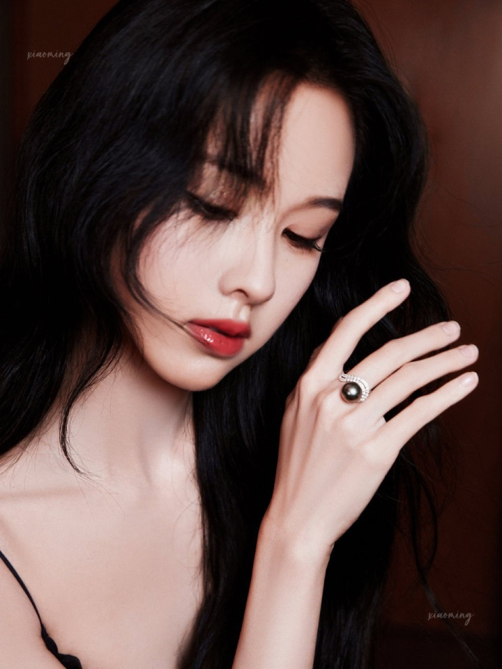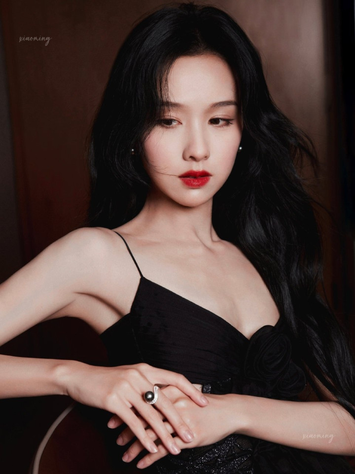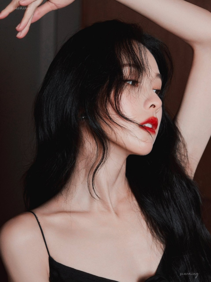 陈齐灵明明墨发黑裙阴凉,偏巧红唇指尖欲擒先纵,勾东说念主于无形