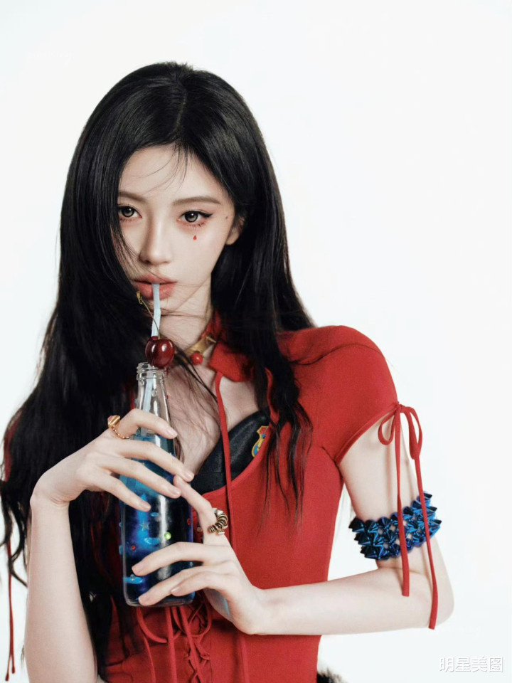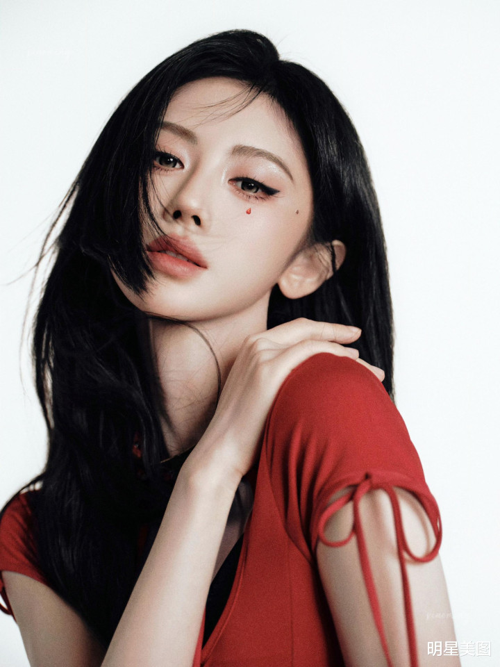 鞠婧祎从90年代画报里走来,抽绳短裙破洞丝,米兰体育app眼尾红痣又野又媚
