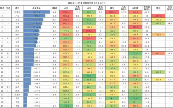 固然弗成否定广东、江苏等省份齐是电力供应大省,关联词与它们比拟,这些地区的发电量照旧稍有失态的。