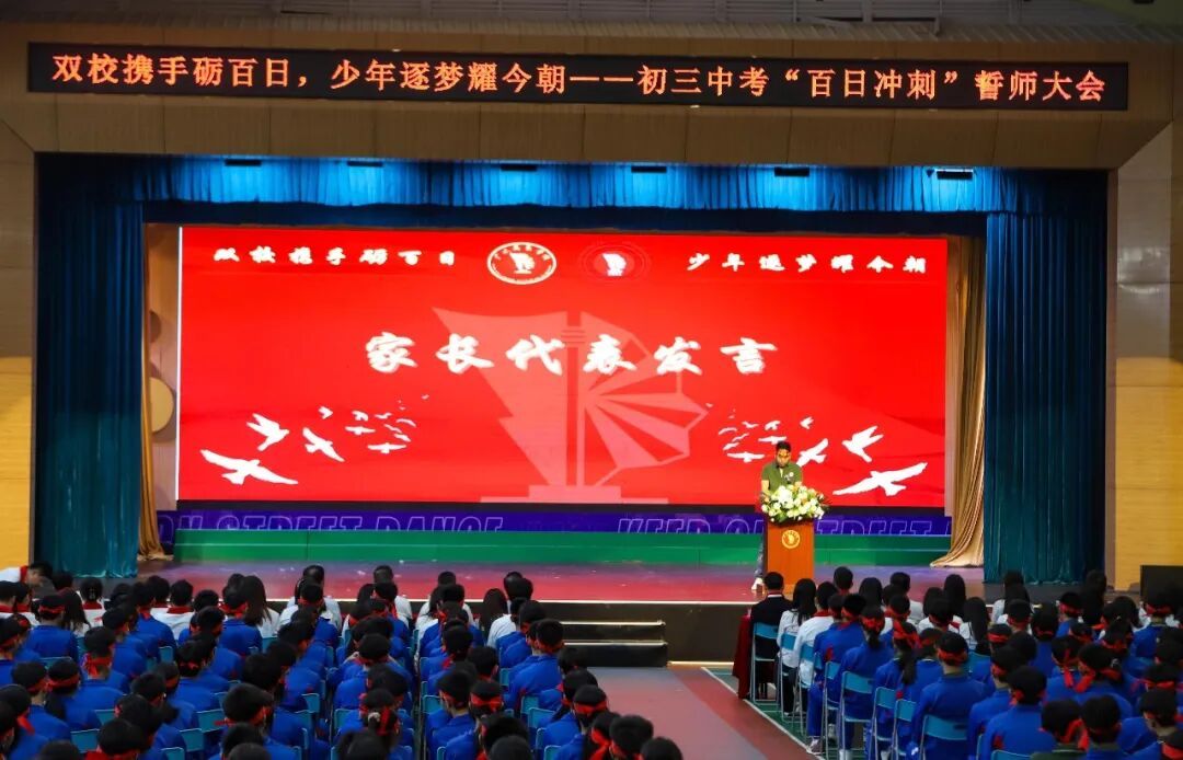 举止现场,全场起立奏唱国歌与校歌,现场播放的纪实视频,定格了学子们伏案种植、笔尖逐光的平素。学生代表以芳华之声诉说追梦之志,谈出了举座初三学子的坚忍与握着;家长代表深情传话,将家校的虚心与祈望化作学子饱经风雨的勇气。