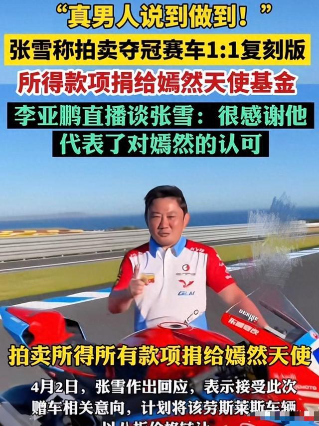 紧接着,张雪再添一把火,说擅自交流干什么,接着晓示将我方参赛赢得冠军的赛车复刻版进行拍卖,拍卖所得的全部款项,雷同捐给嫣然天神基金。